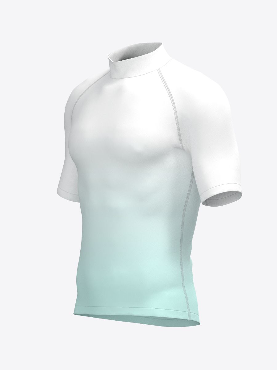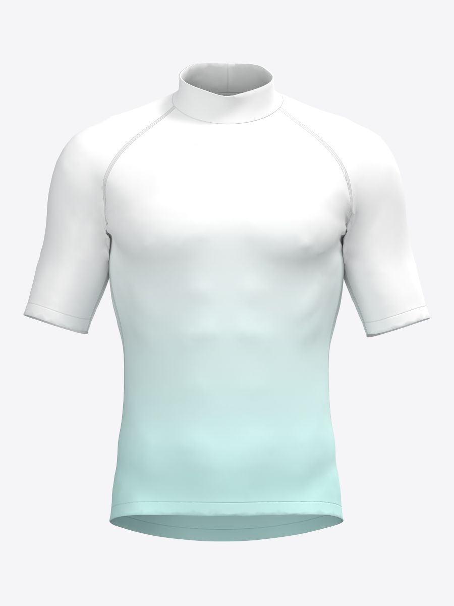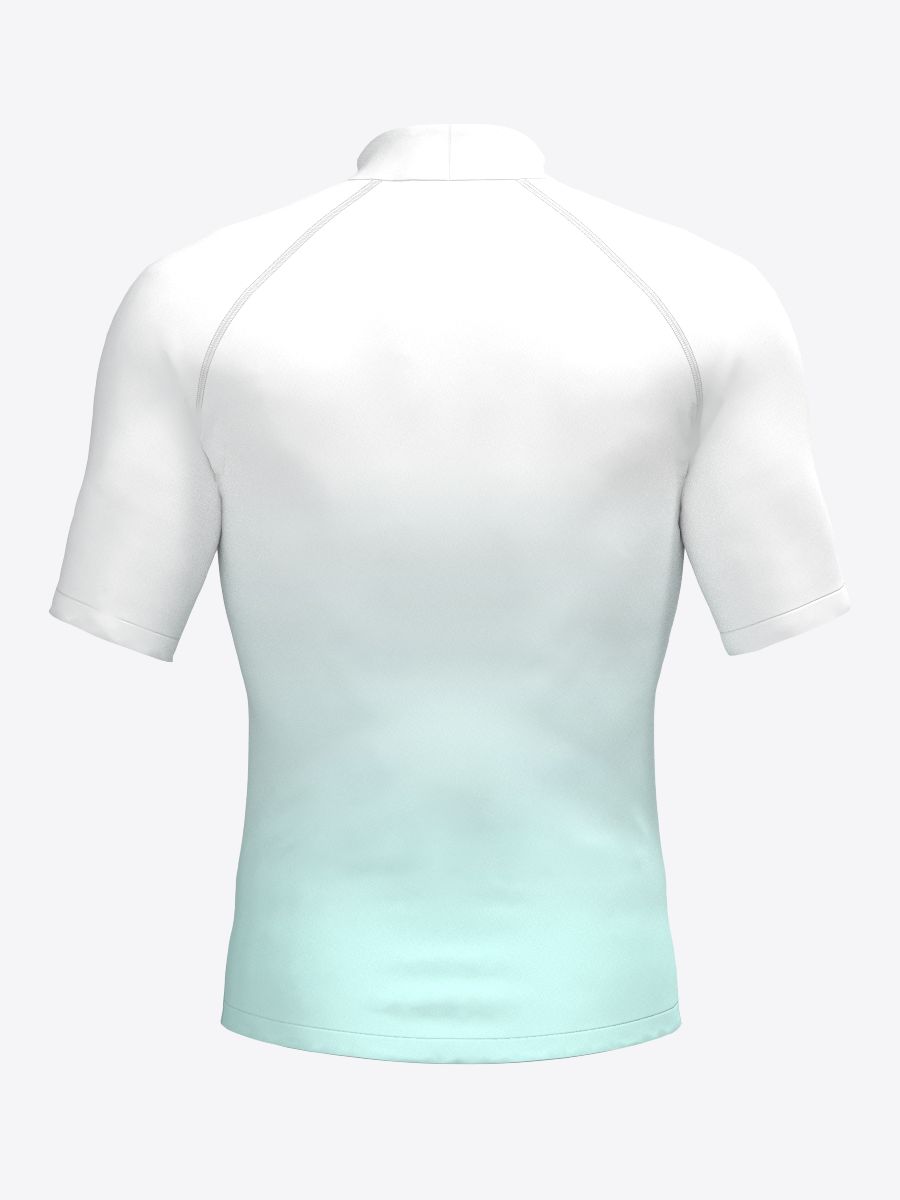 Airēšanas rashguard pieguļošais īso piedurkņu krekls ar paaugstinātu kakli.