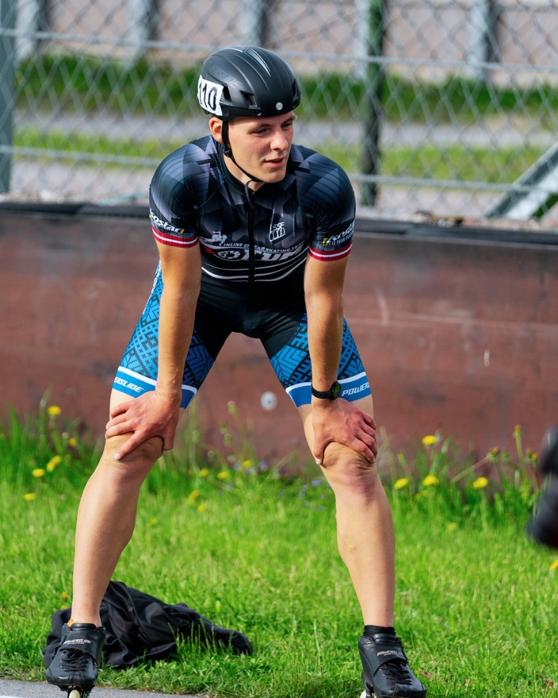 Ātruma skrituļslidošanas tērps izstrādāts maksimālai aerodinamikai un zemai gaisa pretestībai. Tā konstrukcija ir pielāgota skrituļslidošanas specifikai, novēršot auduma krokošanos krūšu un vēdera zonā, sportistam atrodoties zemā aerodinamiskā ietupienā. Tērpa piedurknes veidotas no tehniski rievota materiāla gaisa plūsmas optimizēšanai. Paaugstinātā apkakle un rāvējslēdzējs priekšējā daļā nodrošina ciešu piegulšanu kakla zonā, savukārt neslīdošas silikona apmales staru galos (grips) fiksē tērpa pozīciju kustības laikā. Blīvais materiāls rada “otrās ādas” efektu, neierobežojot kustību amplitūdu. Mugurpusē iestrādātas divas kabatas enerģijas želeju vai neliela ekipējuma glabāšanai.