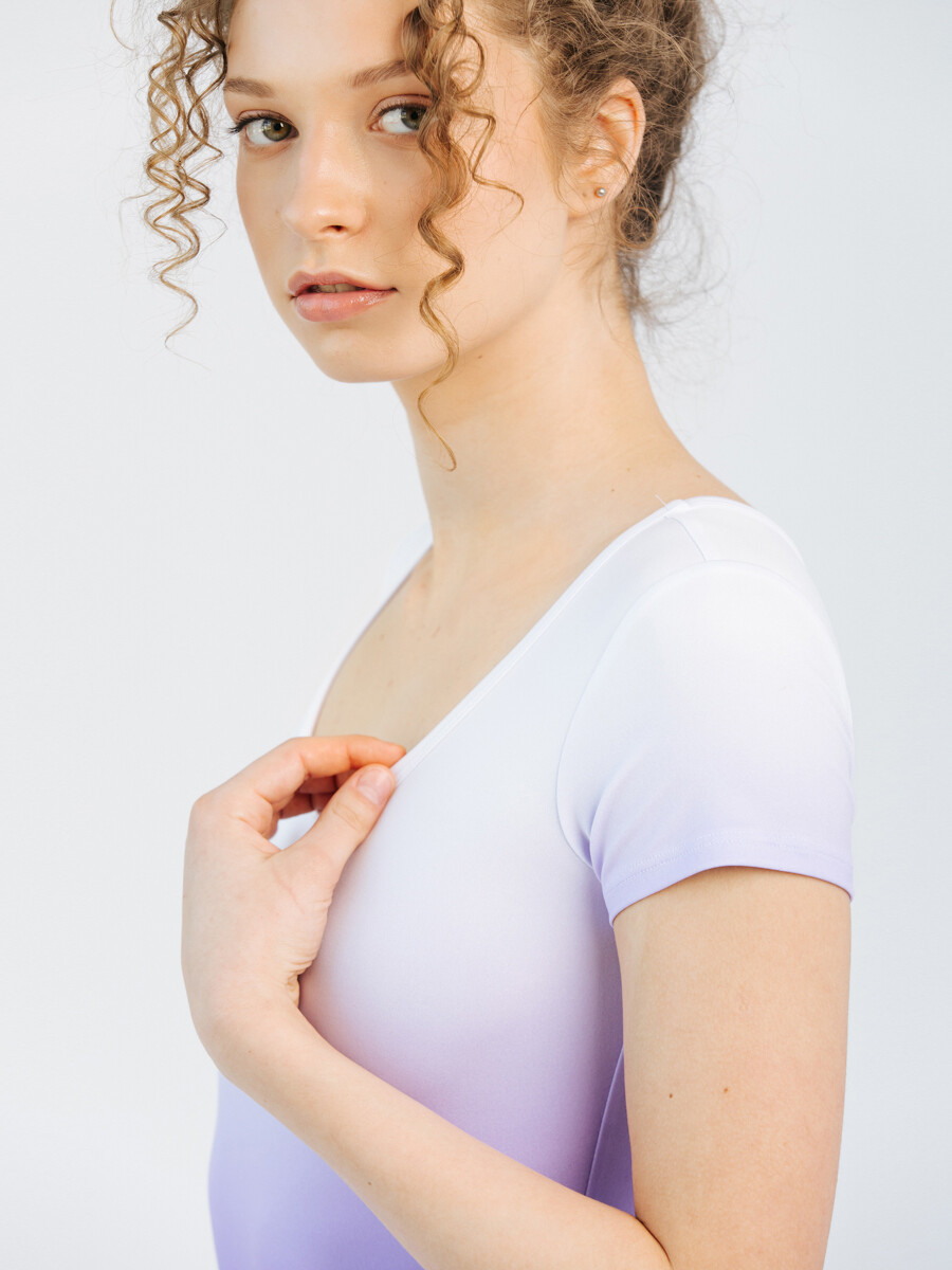 Pieguļošs dejošanas bodijs ar  īsām piedurknēm un dziļu kakla izgriezumu, izgatavots no augstas kvalitātes, elastīga un viegla materiāla, kas pilnībā pielāgojas ķermeņa līnijām un nodrošina maksimālu kustību brīvību dejas laikā.