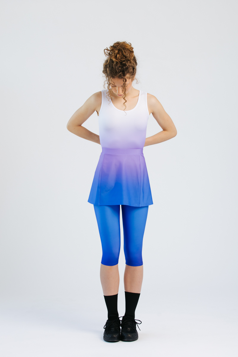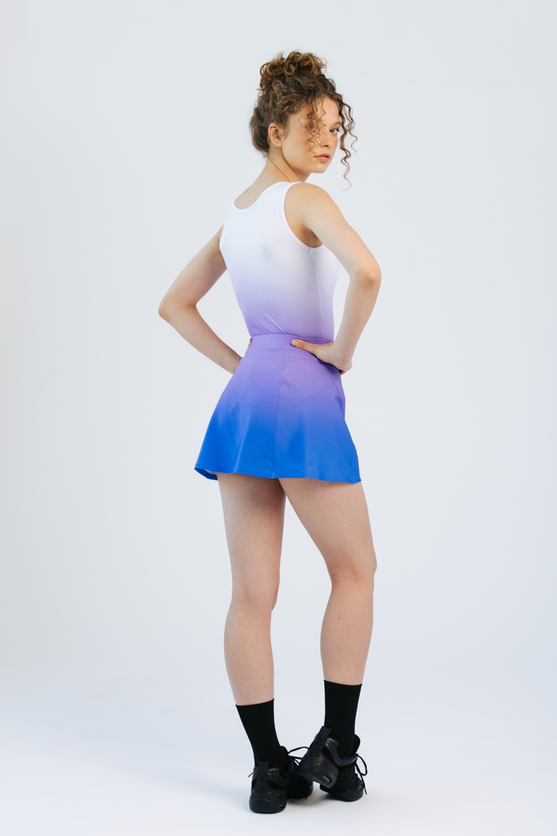 Ērti un funkcionāli A-silueta svārki ar stingru un elastīgu jostas vietu, kas ideāli pieguļ un noturas vietā arī intensīvu kustību laikā. Svārkos ir iestrādāti viegli, elastīgi apakššorti, kas nodrošina brīvas kustības un drošības sajūtu mēģinājumu vai uzstāšanās laikā. Modelis izgatavots no gaiscaurlaidīga, ātri žūstoša materiāla, kas saglabā komfortu visas aktivitātes garumā.