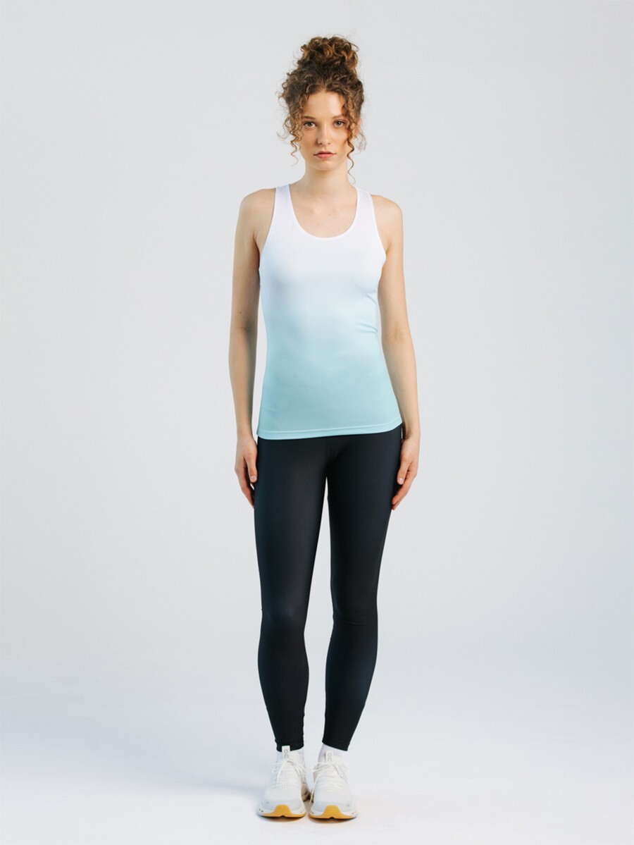 Bezpiedurkņu dejas tops ar apaļu kakla izgriezumu un racerback stila muguras daļu, izgatavots no viegla, ātri žūstoša materiāla ar labu gaisa cirkulāciju, nodrošina maksimālu komfortu un neierobežo kustības intensīva treniņa vai deju aktivitātēs.