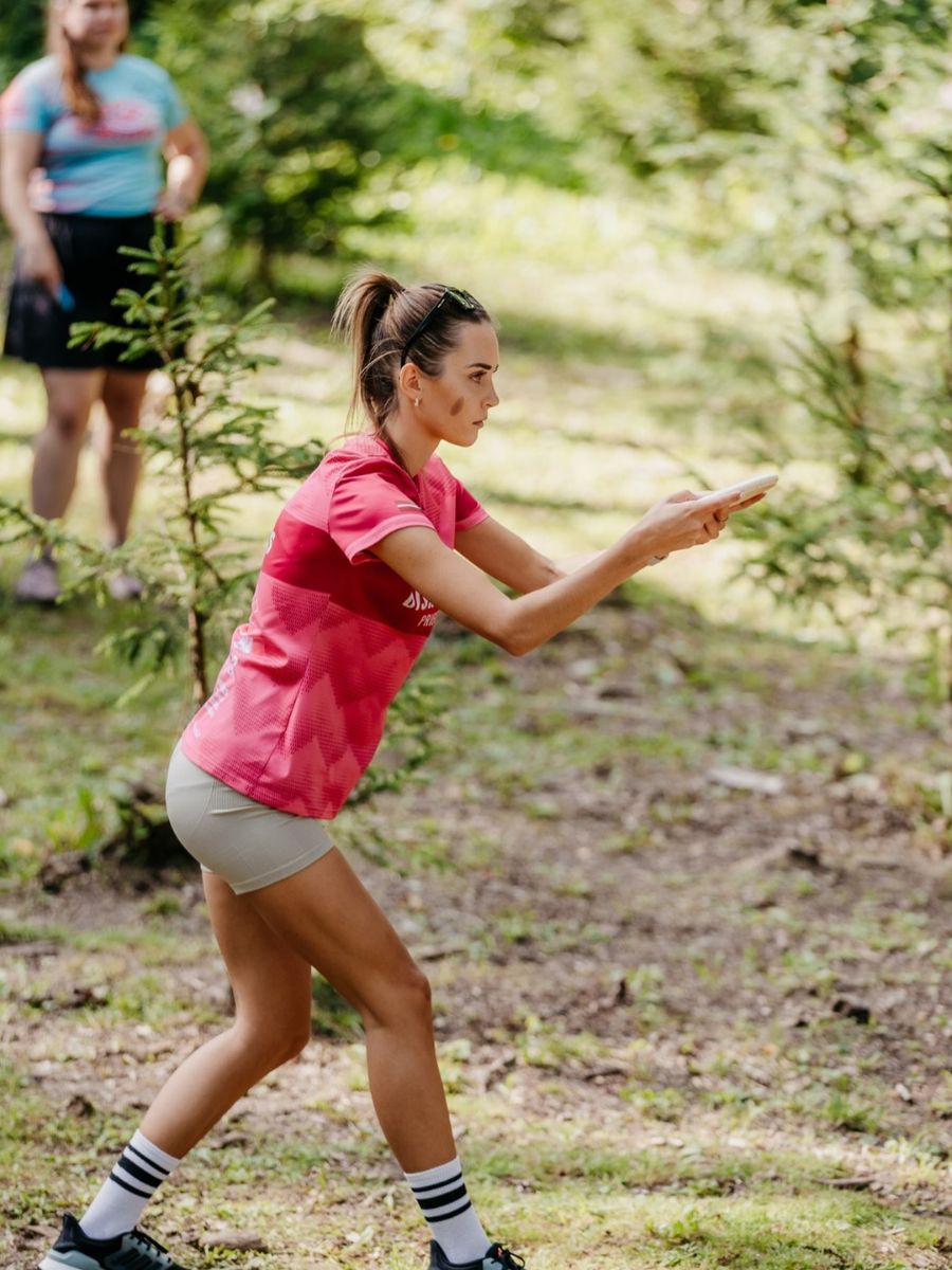 Sieviešu disku golfa T krekls ar taisnu piegriezumu un īsām reglāna piedurknēm ir radīts sportistiem, kuriem prioritāte ir augsts rezultāts un neierobežota kustību amplitūda. Izgatavots no īpaši viegla un gaiscaurlaidīga sporta auduma, šis krekls nodrošina optimālu termoregulāciju pat visintensīvāko treniņu vai sacensību laikā.