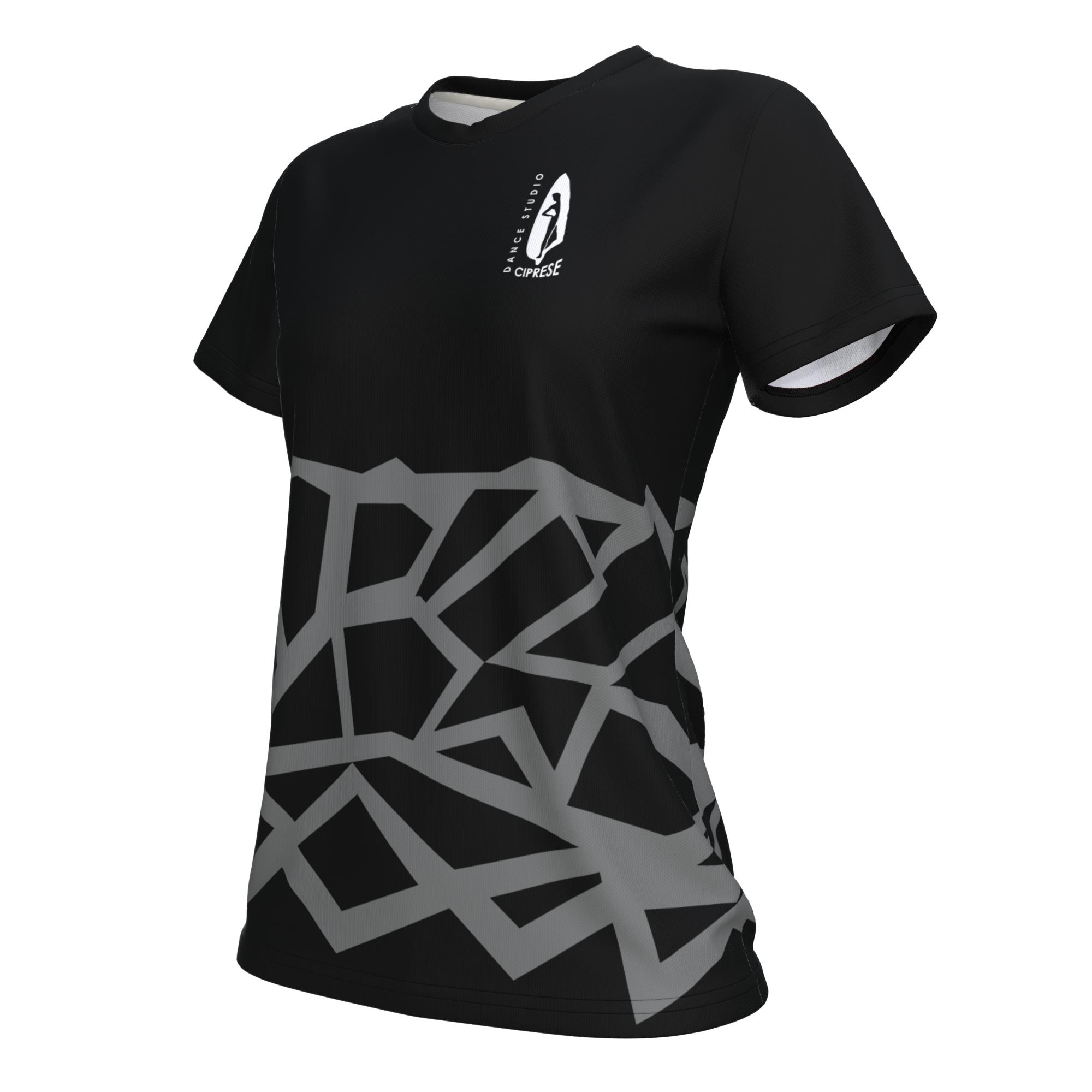 Deju studijas “Ciprese” brīvi pieguļošs dejas T-krekls ar V-veida kakla izgriezumu un apmalojuma lenti, īsām piedurknēm, kas izgatavots no viegla materiāla, lai nodrošinātu maksimālu komfortu un kustības brīvību.