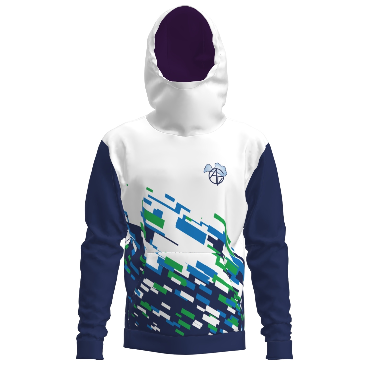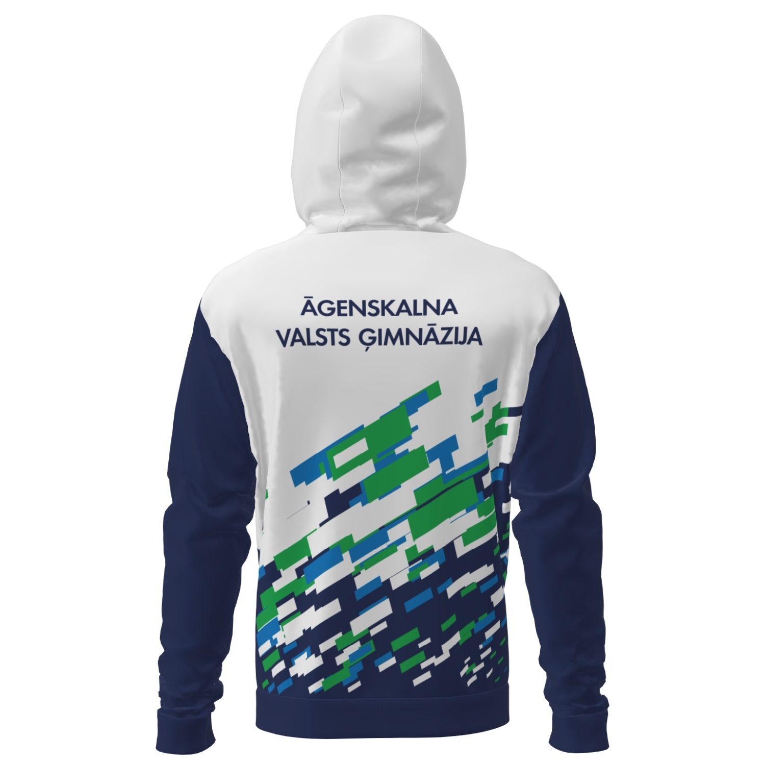 Džemperis ar kapuci Āgenskalna Valsts ģimnāzijas skolēniem. Paredzēta lietošanai ikdienā vai pārstāvot mācību iestādi ārpus tās.