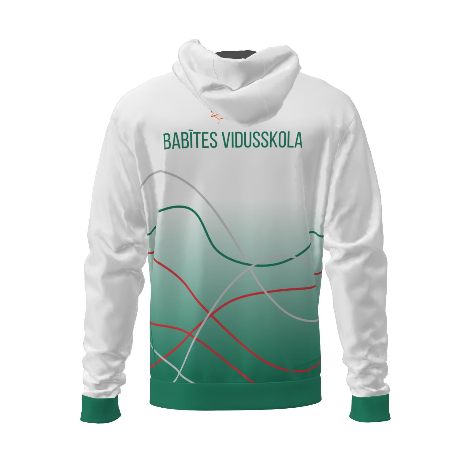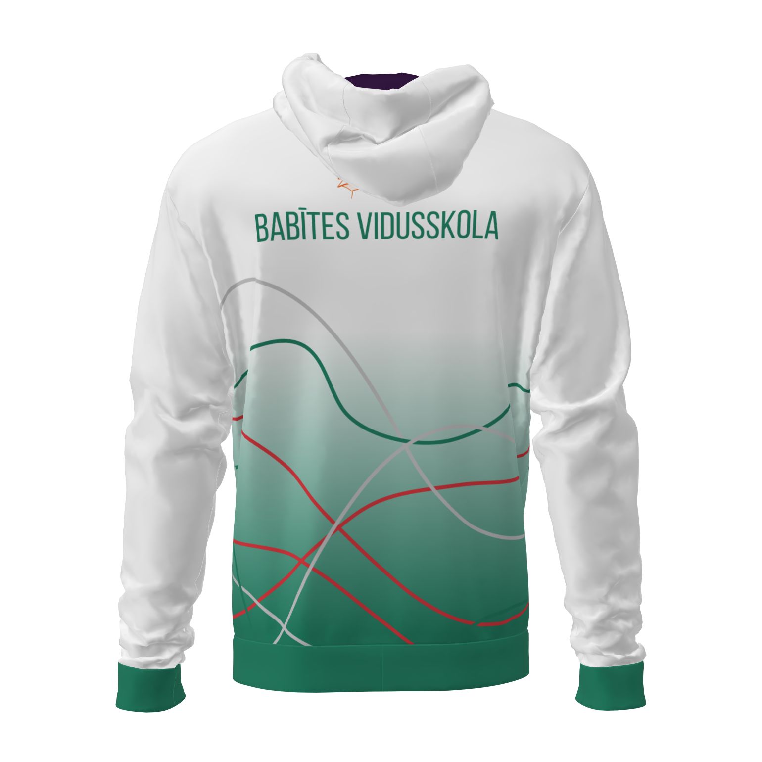 Džemperis ar kapuci Babītes vidusskolas skolēniem. Paredzēts lietošanai ikdienā vai pārstāvot mācību iestādi ārpus tās.