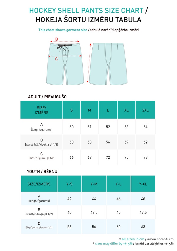 Šorti izgatavoti no blīva un izturīga poliestera, kas ir noturīgs pret berzi un mehāniskiem bojājumiem saskarē ar inventāru. Stratēģiski izvietotie elastīga materiāla paneļi sniedz izcilu manevrētspēju, savukārt klasiskais hokeja auklojums un integrētā, regulējamā josta ar izturīgu sprādzi garantē stabilu un individuāli pielāgotu piegulumu.