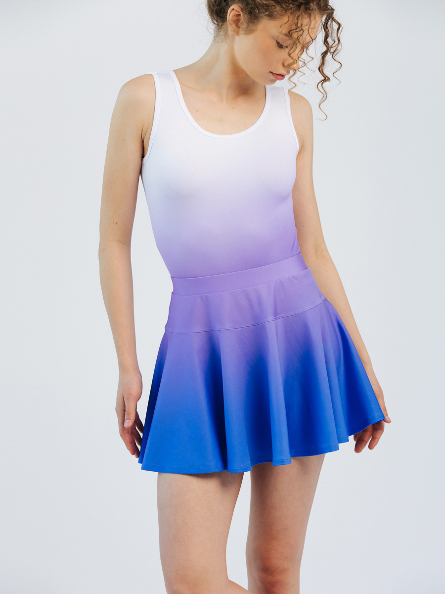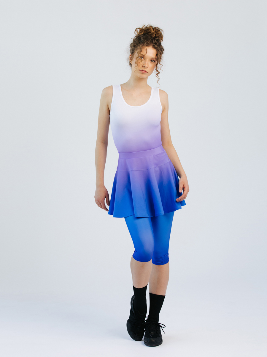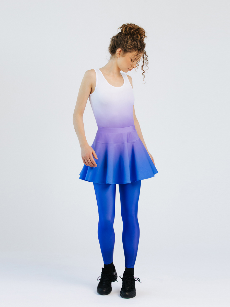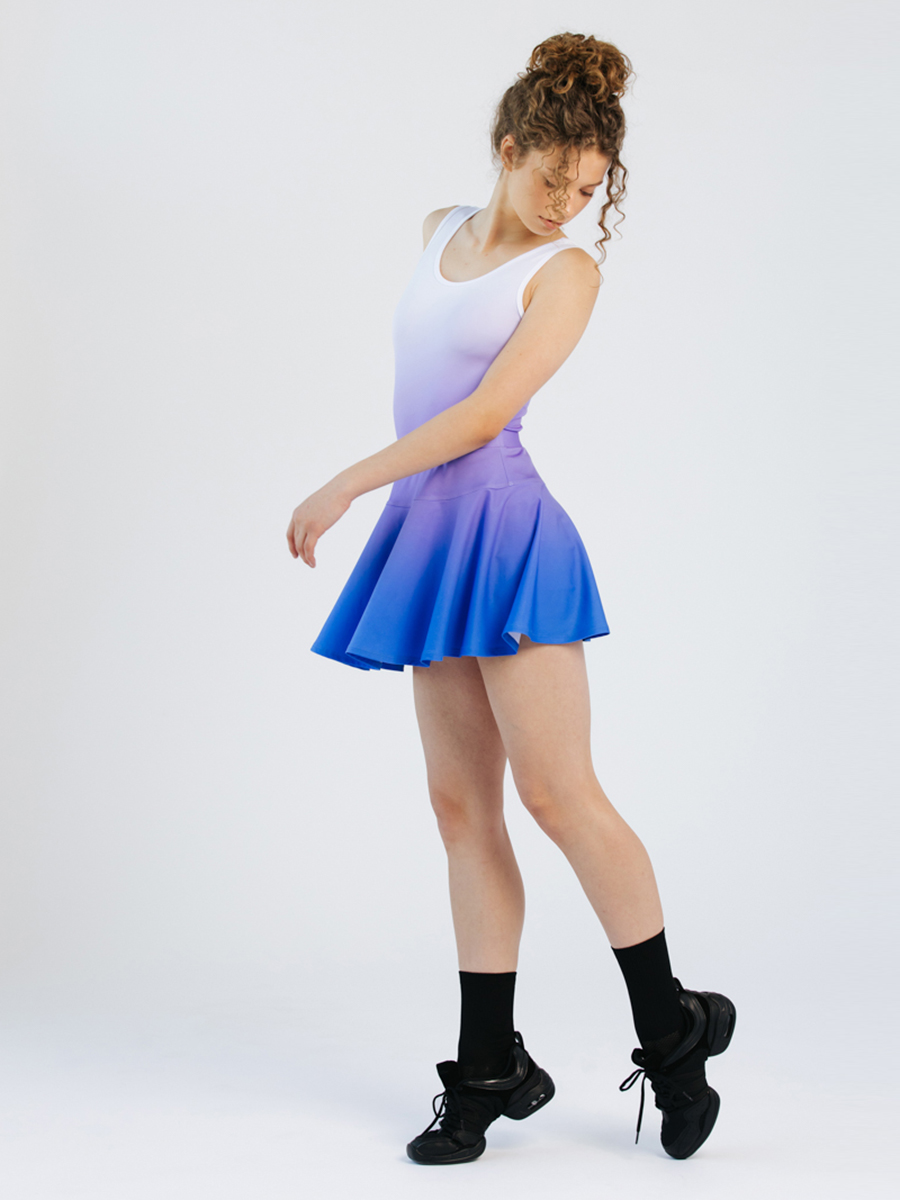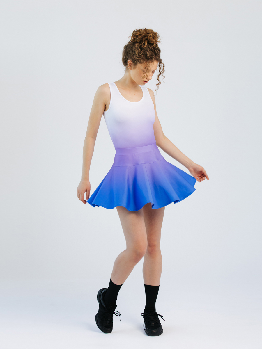 Kupli dejošanas svārki ar ielocēm un iestrādātiem apakššortiem, elastīgu un stingru jostas vietu. Iespējams variēt svārku un apakššortu garumu kā arī opciju bez apakššortiem.
