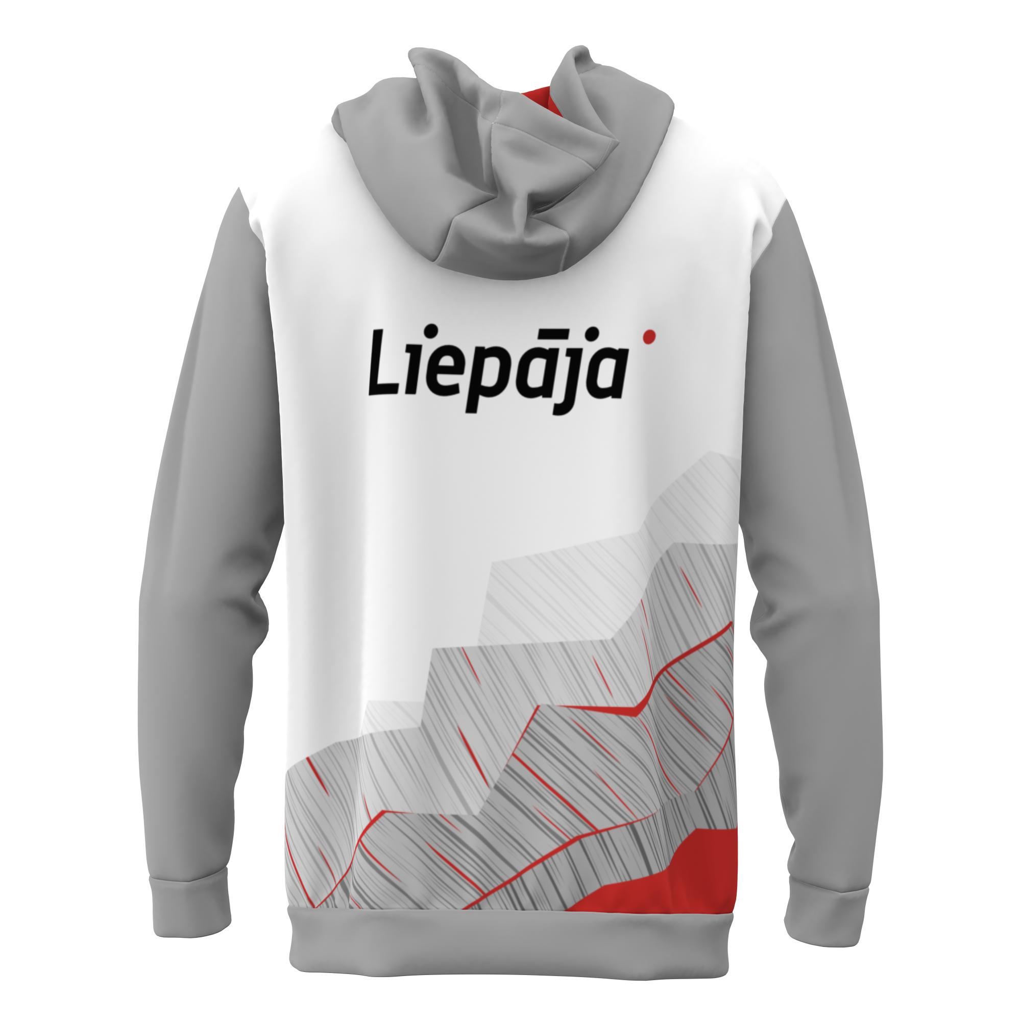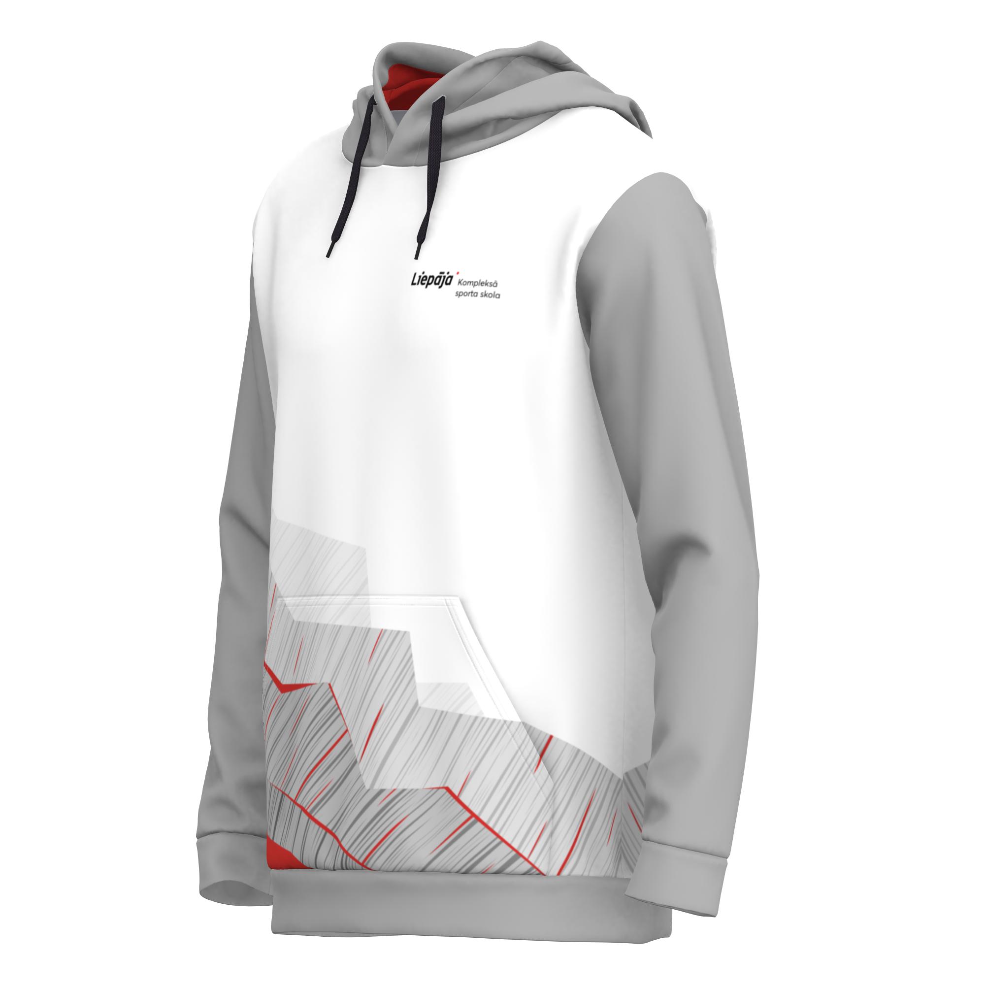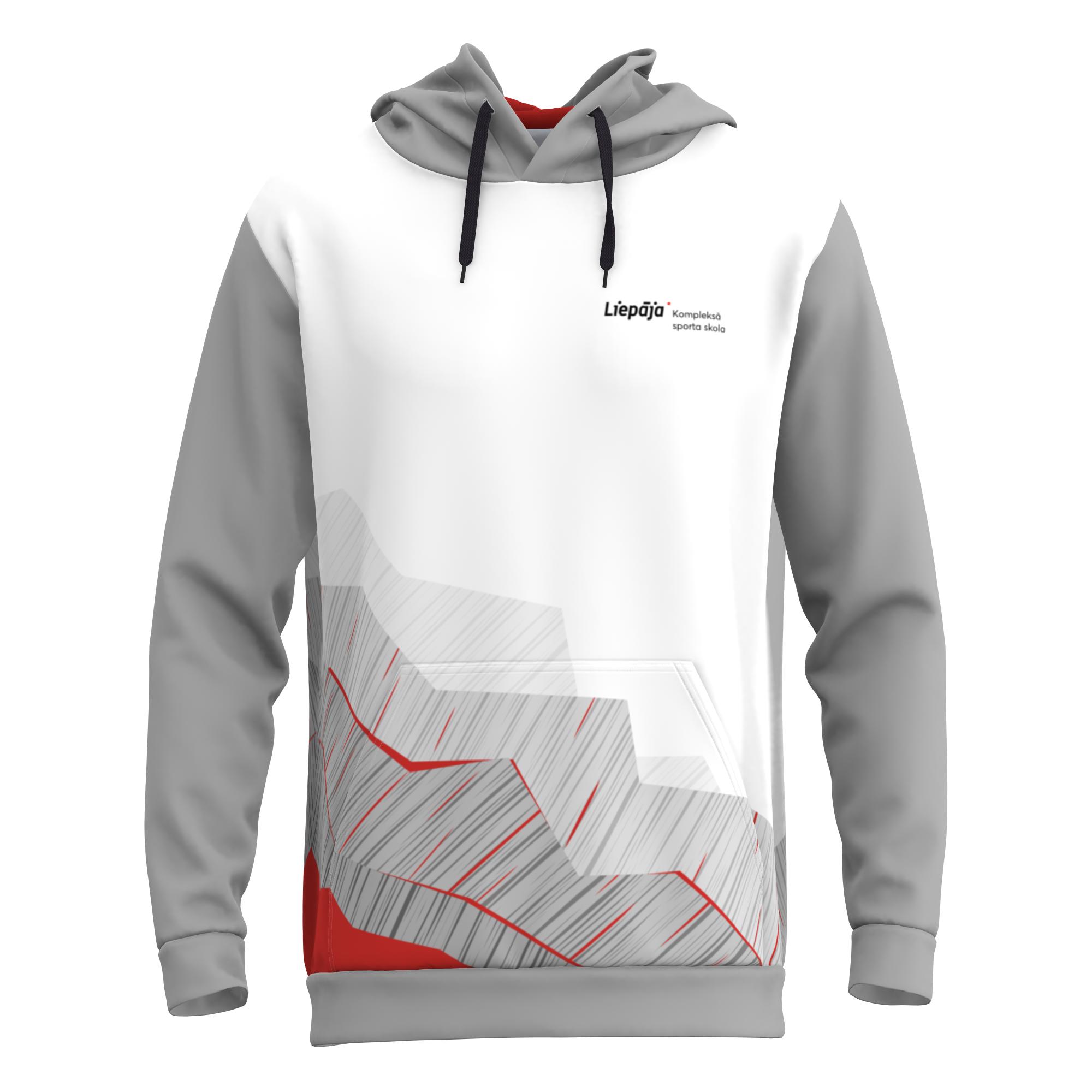 Regulāra piegriezuma Liepājas kompleksā sporta skolas džemperis ar oderētu kapuci un savelkamām auklām, lielu priekšējo ķenguru kabatu, izgatavots no silta, mīksta un nodilumizturīga materiāla, kas nodrošina vēja aizsardzību un ir ar mitruma atgrūdošām īpašībām.
