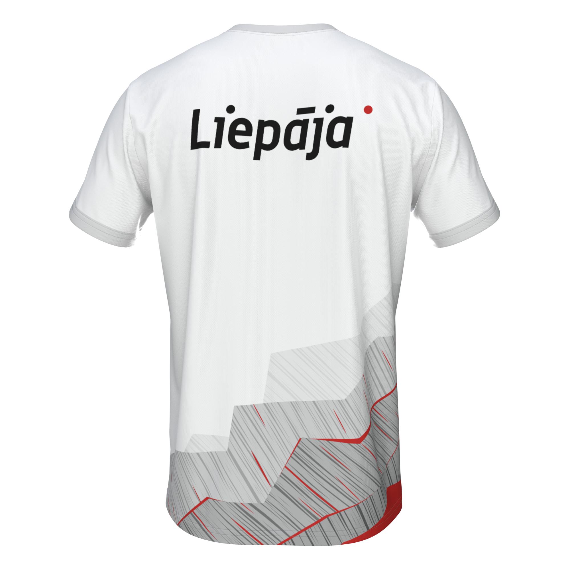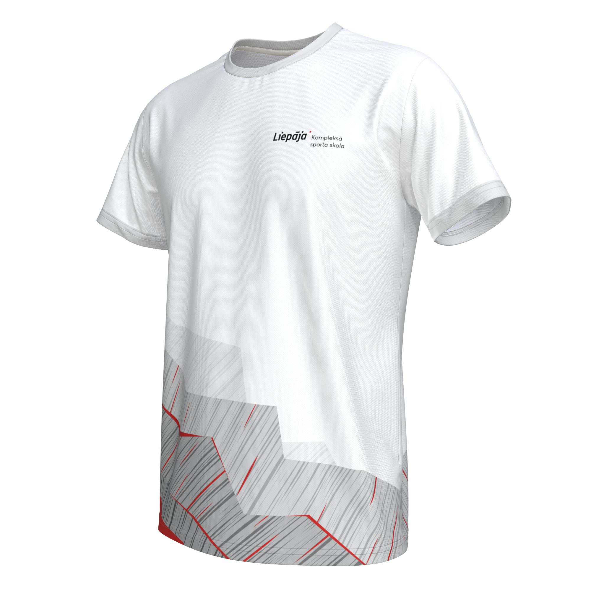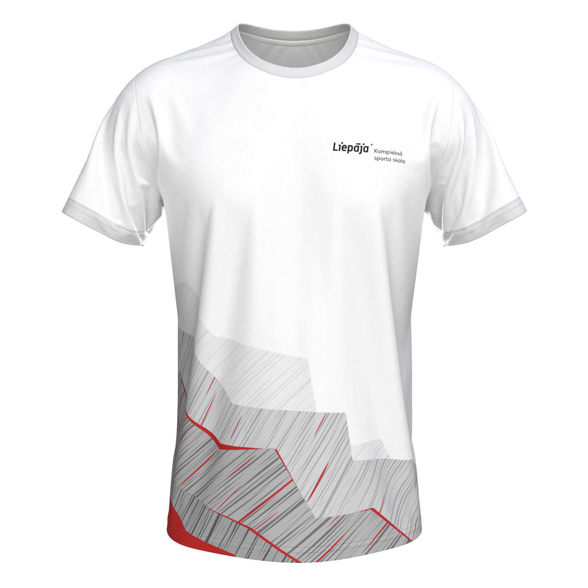 T-krekls ar Liepājas kompleksās sporta skolas dizainu. Piemērots ikdienai un sportiskām aktivitātēm. Taisna piegriezuma vīriešu t-krekls ar īsām piedurknēm, izgatavots no viegla un gaisa caurlaidīga sporta materiāla. T-krekls ir izstrādāts maksimālam komfortam un kustību brīvībai, padarot to par universālu izvēli gan treniņiem, gan ikdienas aktivitātēm.
