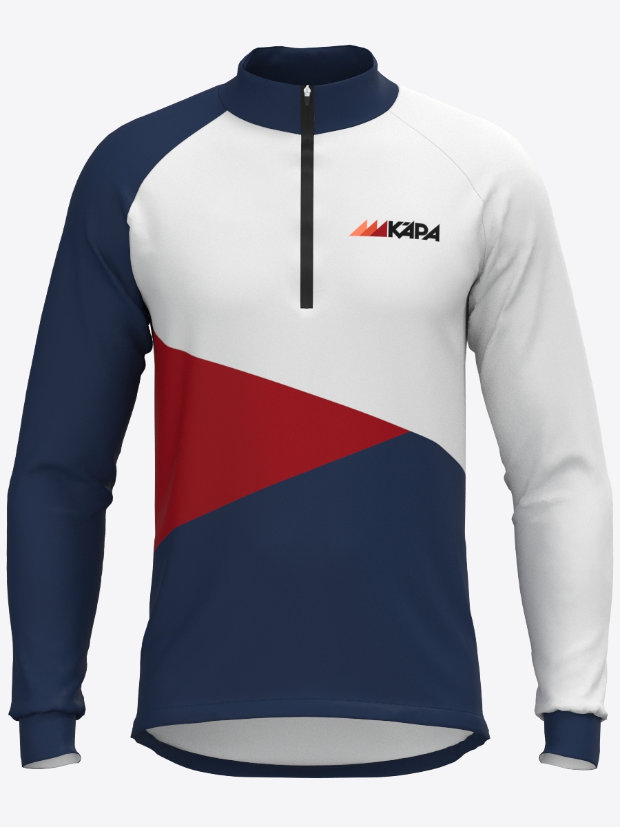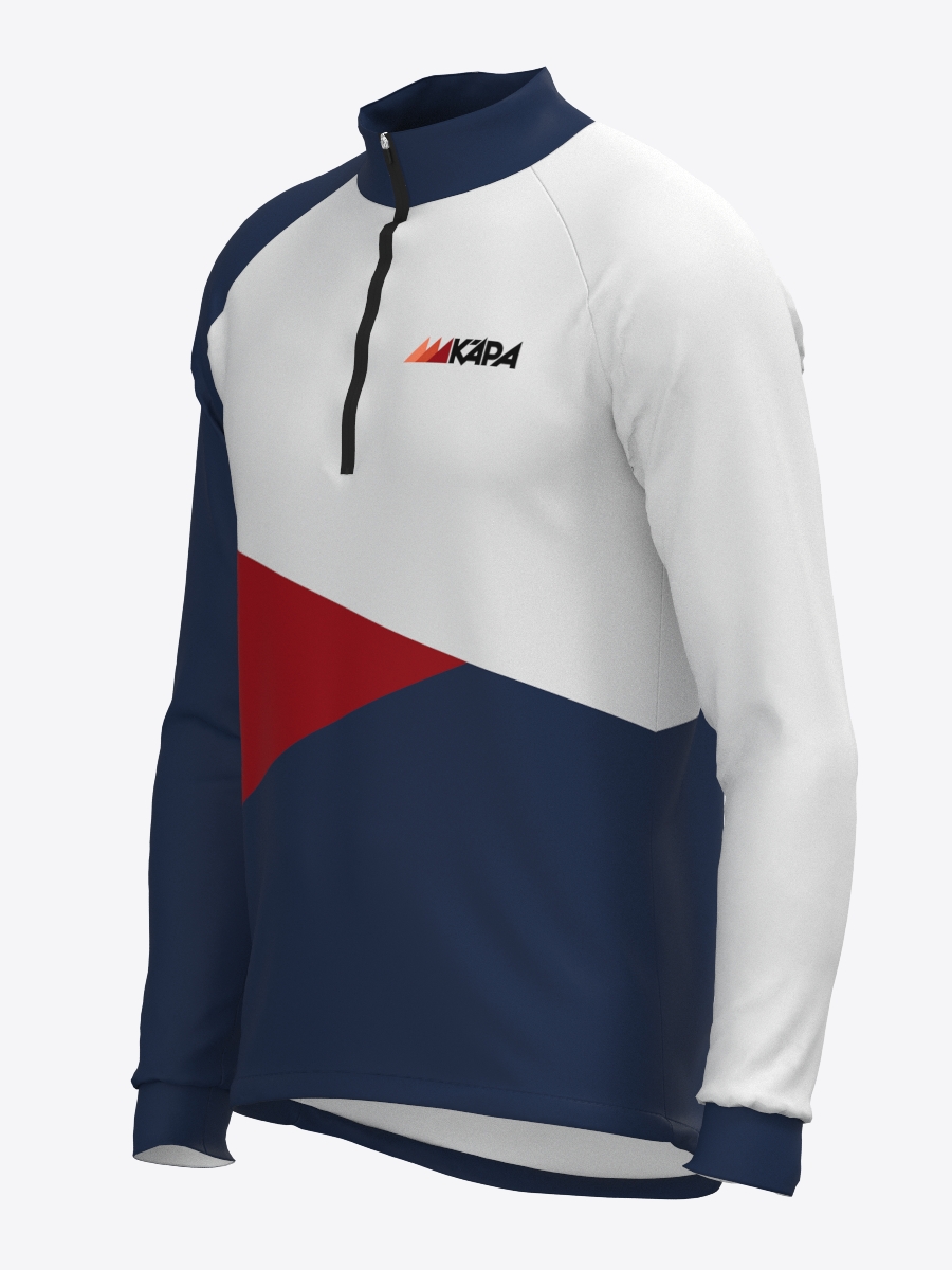 Termo krekls ar garām reglāna, paredzēts OK Kāpa orientēšanās kluba biedriem, izgatavots no vieglā, elastīga un ātri žūstoša materiāla. Tas nodrošina komfortu, efektīvi absorbē un izvada lieko mitrumu, kā arī cieši pieguļ augumam. Apkakles rāvējslēdzējs nodrošina papildu ventilācijas iespēju.