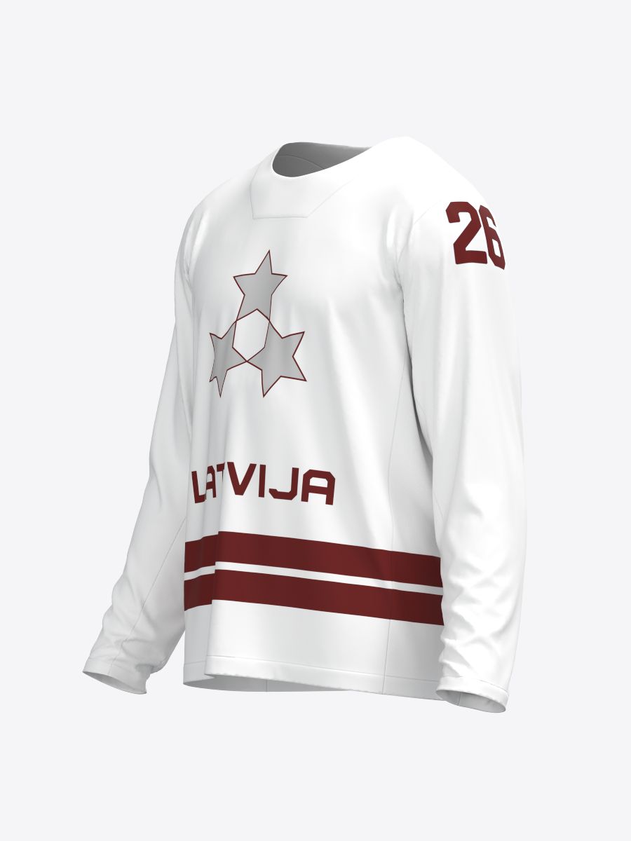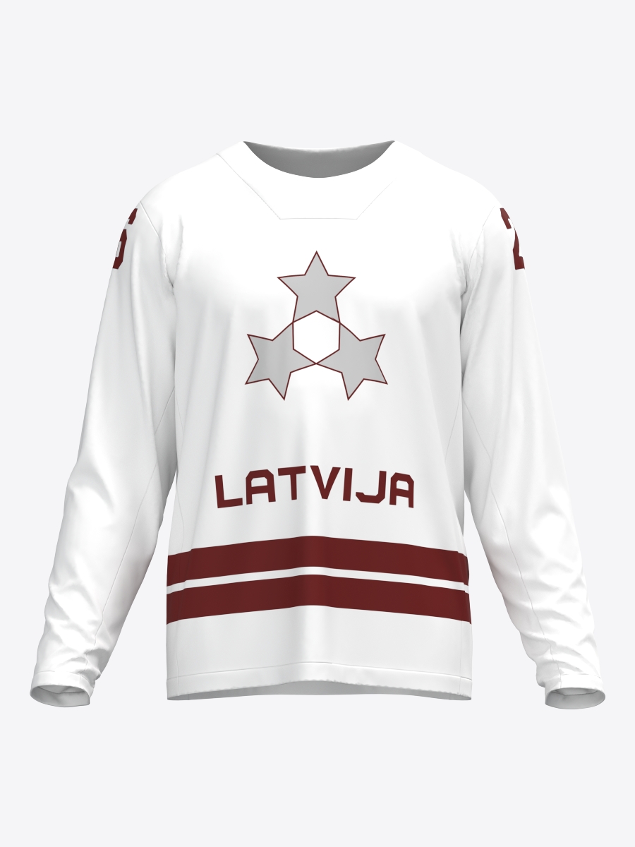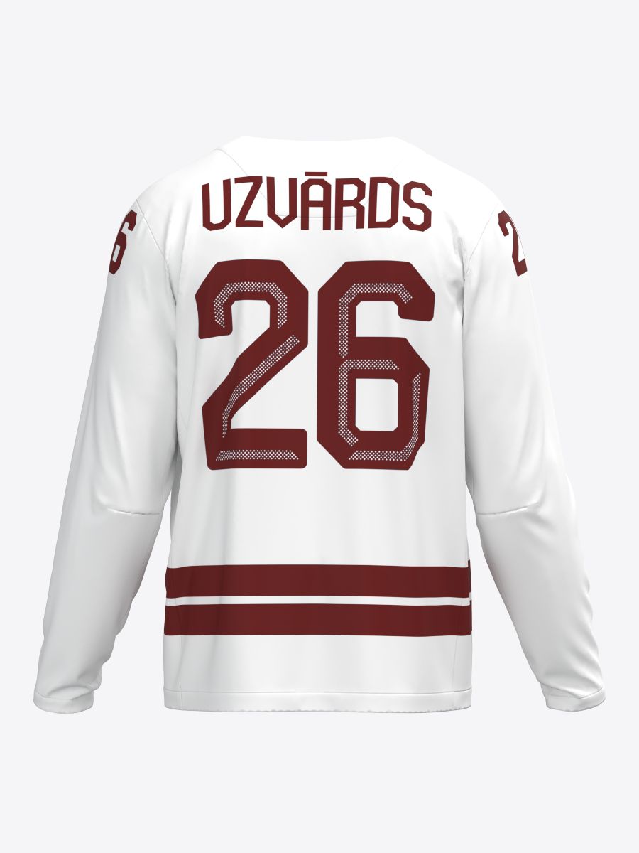 Personalizēts Latvijas hokeja izlases fanu krekls baltā krāsā. Fanu krekls, kas radīts īstiem patriotiem. Neatkarīgi no tā, vai fano arēnā vai mājās pie TV – šis krekls radīs īsto čempionāta atmosfēru. Pateicoties sublimācijas tehnoloģijai, krāsas saglabāsies spilgtas pat pēc daudzām mazgāšanas reizēm.