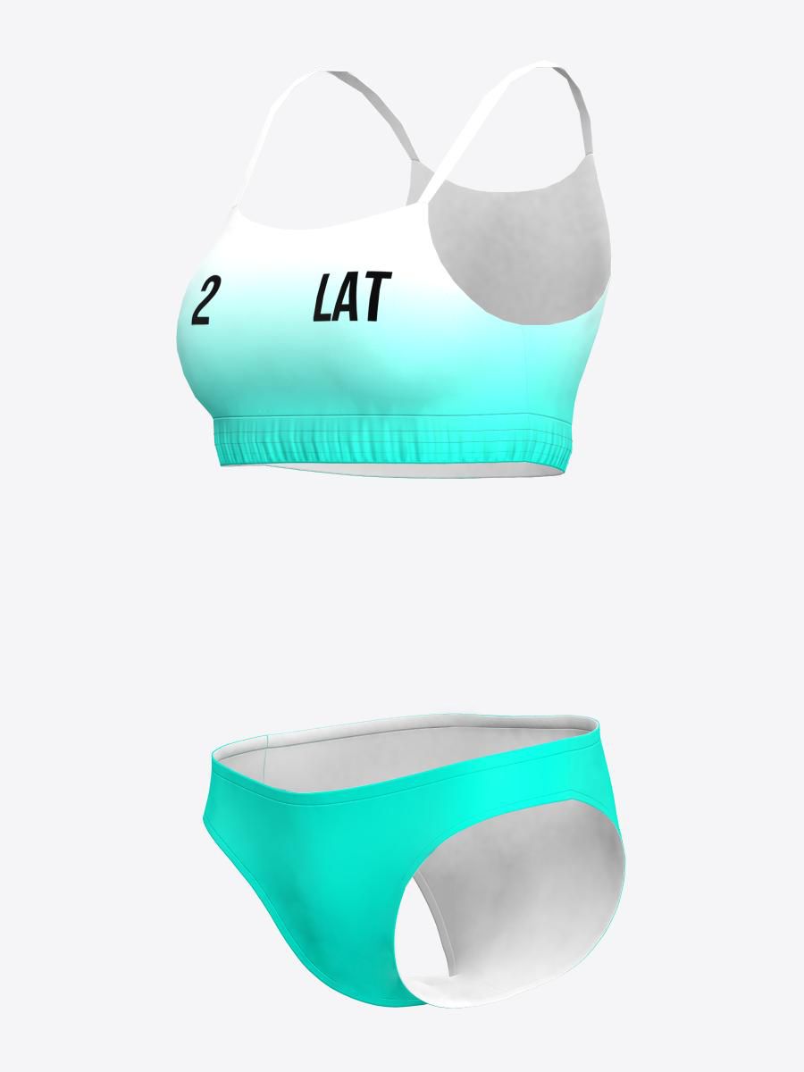 Pludmales formas tērpā ir sporta krūštura tipa tops un bikini apkašdaļa. Tērps ir pieguļošs un ļauj brīvi kustēties un mazina iespēju smiltīm iestrēgt audumā. Elastīgs, viegls un ātri žūstošs materiāls.