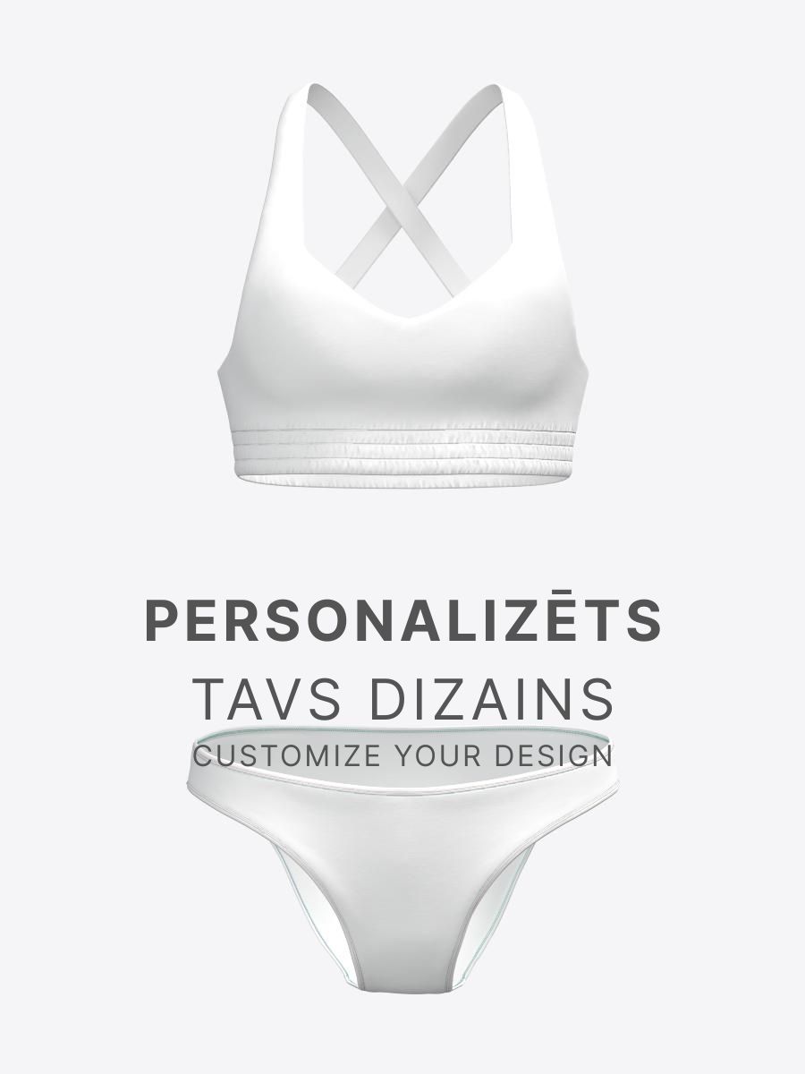 Pludmales formas tērpā ir sporta krūštura tipa tops un bikini apkašdaļa. Tērps ir pieguļošs un ļauj brīvi kustēties un mazina iespēju smiltīm iestrēgt audumā. Elastīgs, viegls un ātri žūstošs materiāls.