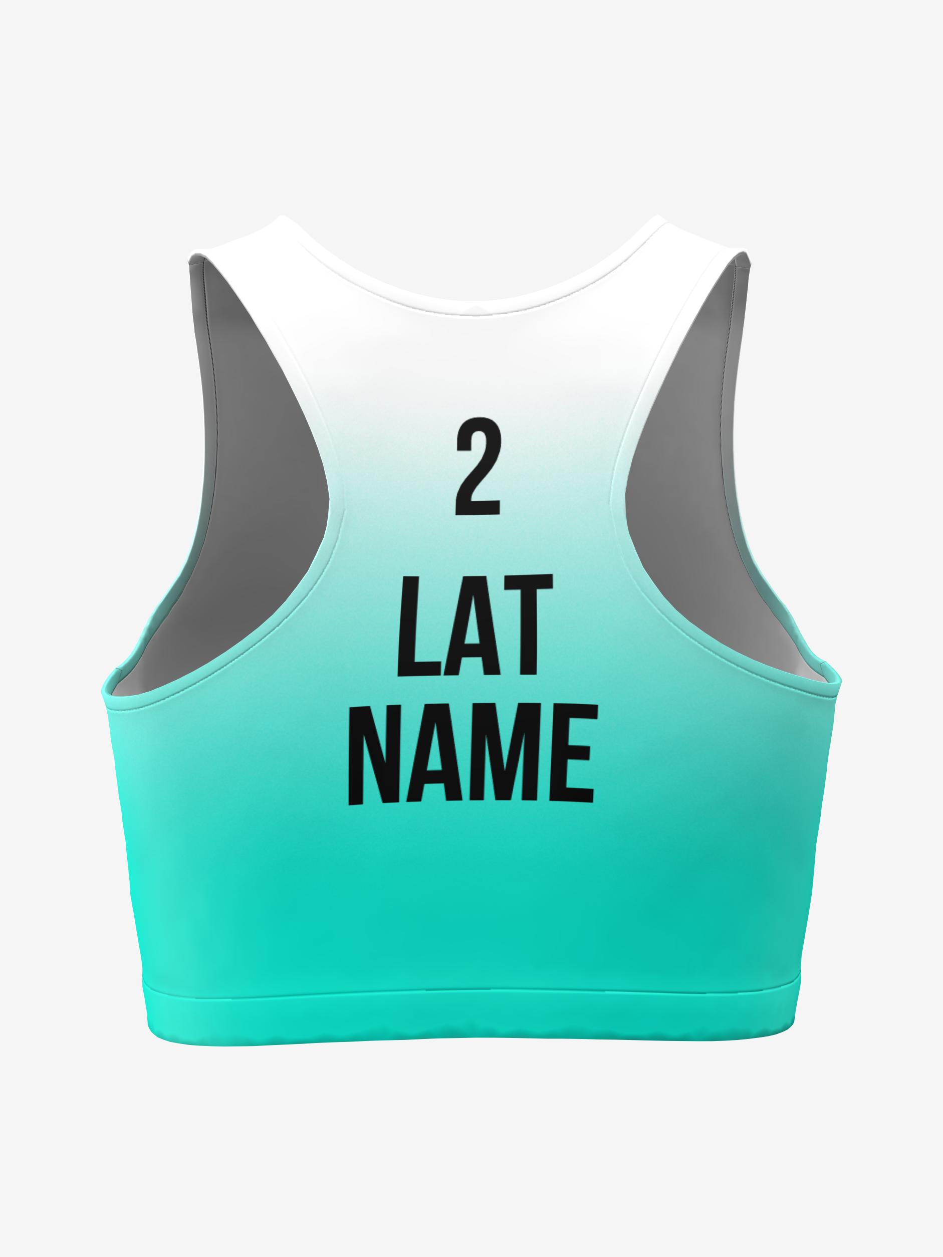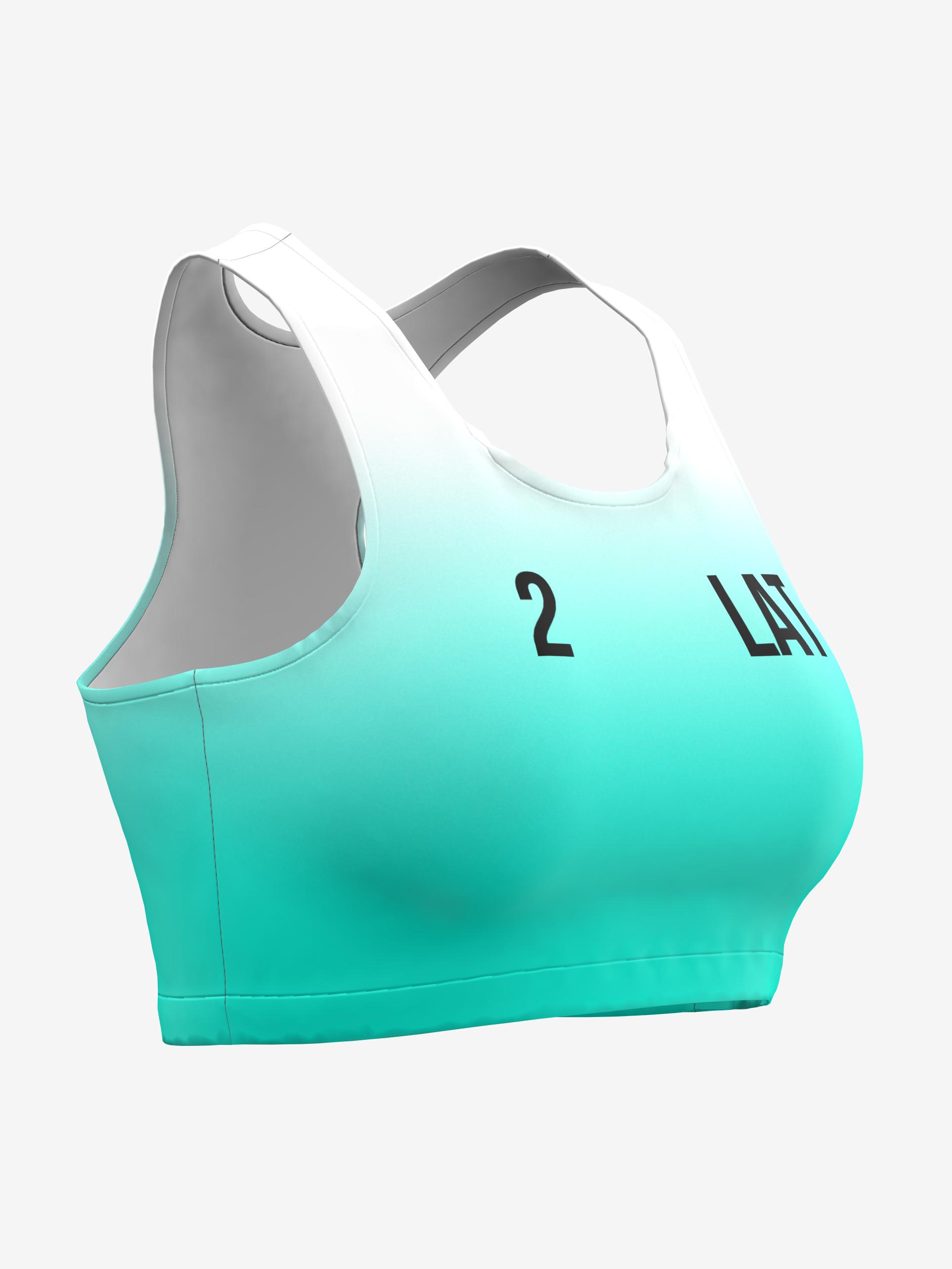 Pludmales volejbola sporta krūšturis ir viegla atbalsta ar dubultu priekšējo daļu, stingru un elastīgu apakšmalu krūšu atbalatam un komfortam, dziļu kakla izgriezumu, racerback mugurpusi, platiem roku riņķiem ar apmalojuma lenti, izgatavots no elastīga materiāla, lai nodrošinātu maksimālu komfortu un kustības brīvību.