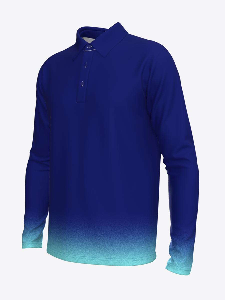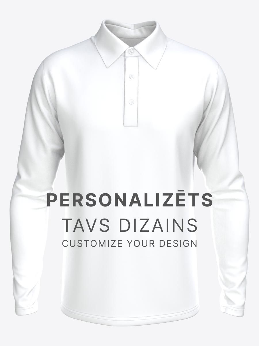 Polo krekls ar garām piedurknēm ar komandas dizainu sublimācijā ražots pēc pieprasījuma.