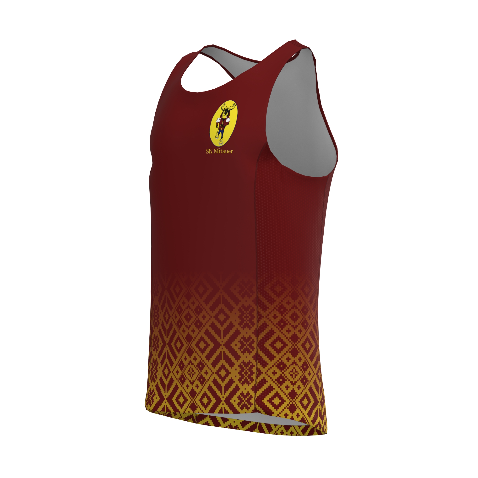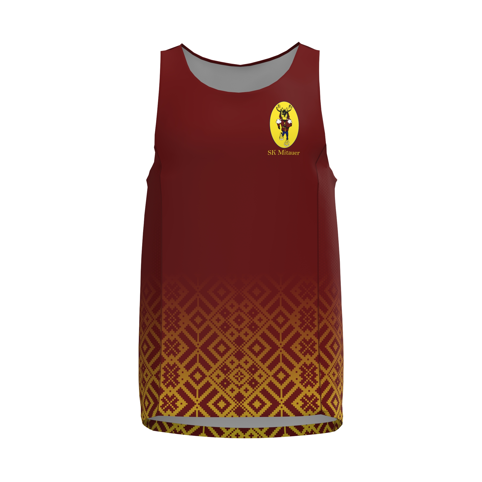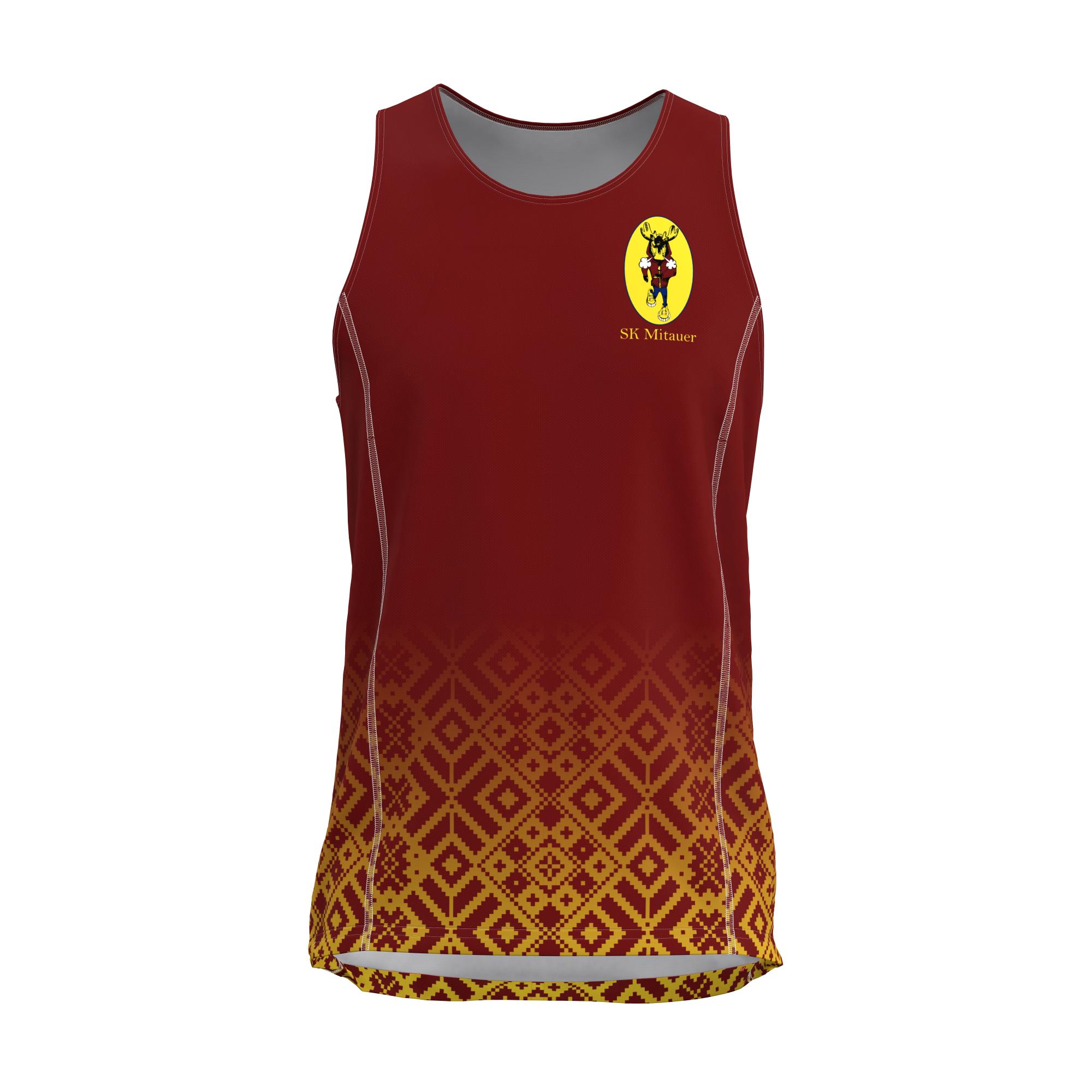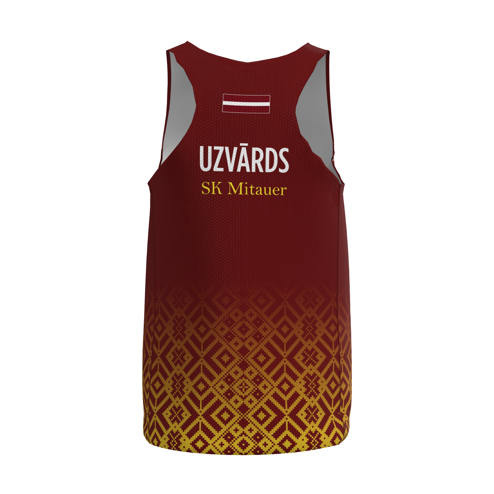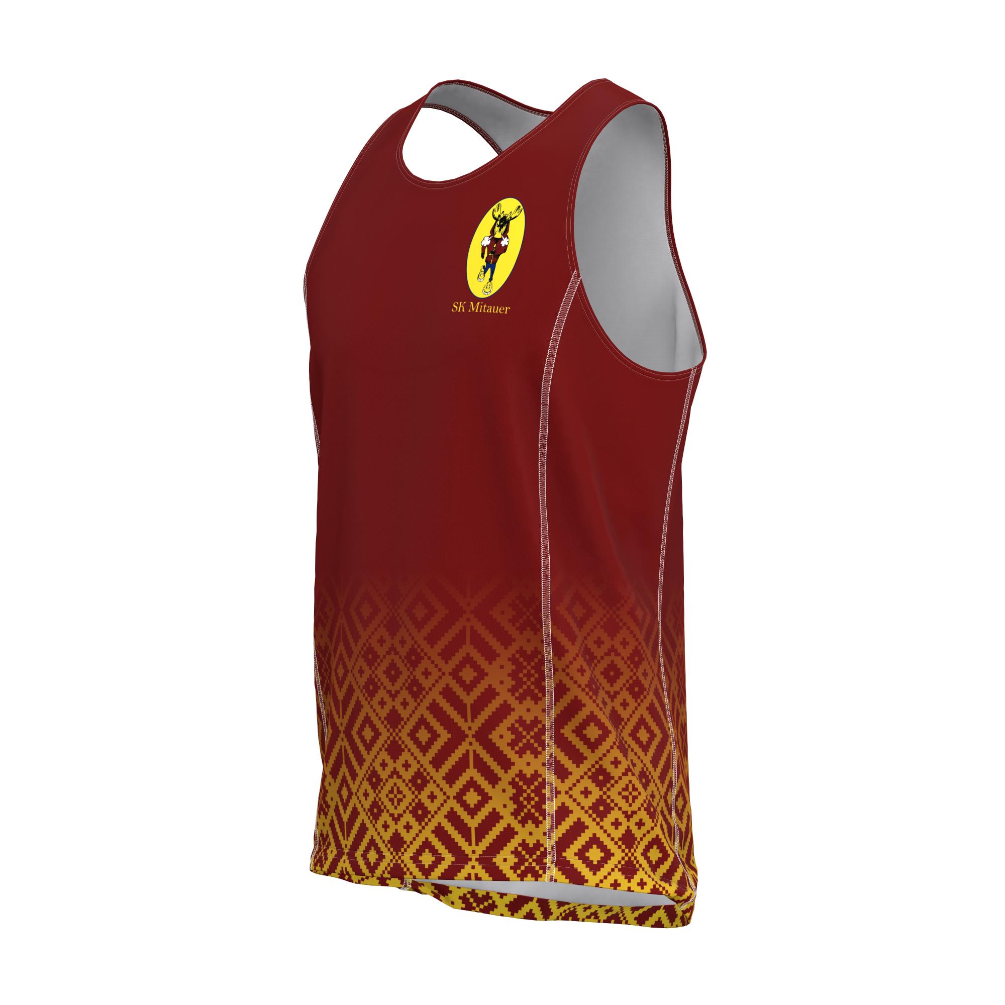 Skriešanas tops ar Jelgavas skriešanas kluba Mitauer dizainu. Piemērots sacensībām un valkāšanai sportiskā nolūkā.