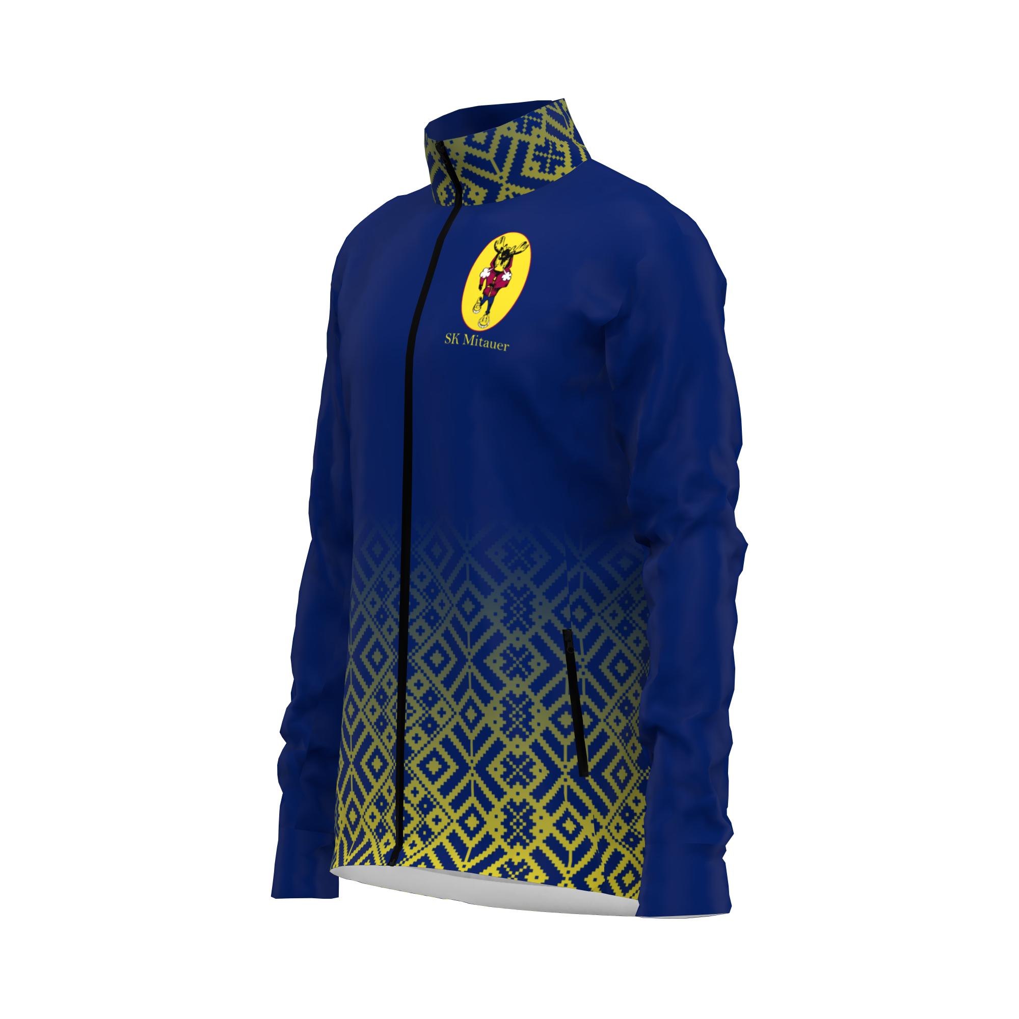 Treniņjaka ar Jelgavas skriešanas kluba Mitauer dizainu. Piemērota sacensībām un valkāšanai sportiskā nolūkā.