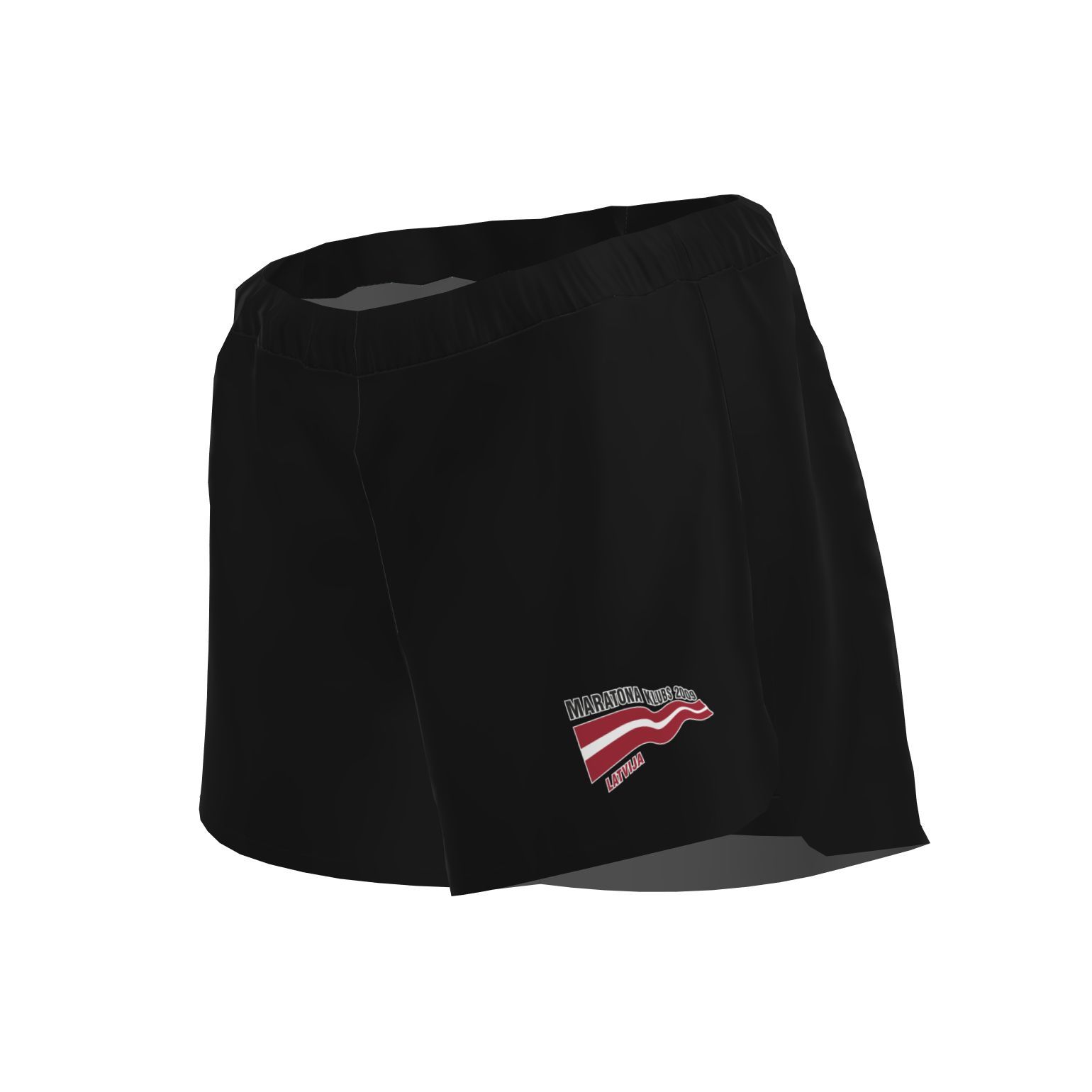 Split melni skriešanas šorti sievietēm ar apakššortiem ir īpaši izstrādāti “Maratona kluba” sportistēm, lai nodrošinātu maksimālu komfortu, elastību un augstu veiktspēju garajās distancēs. Elastīgā josta nodrošina drošu un komfortablu piegulumu, nepieļaujot šortu nobīdi vai ādas kairinājumu kustību laikā.