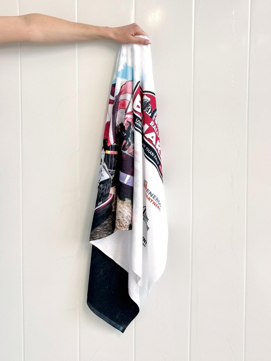 Dvielis ir izgatavots no kokvilnas frotē materiāla, ar sublimācijas drukai paredzēto poliestera pusi, kas piedāvā noturīgas un košas krāsas, un baltu pusi no kokvilnas frotē materiāla. Tas ir lielisks un praktisks aksesuārs komandas un pasākumu reprezentācijai.