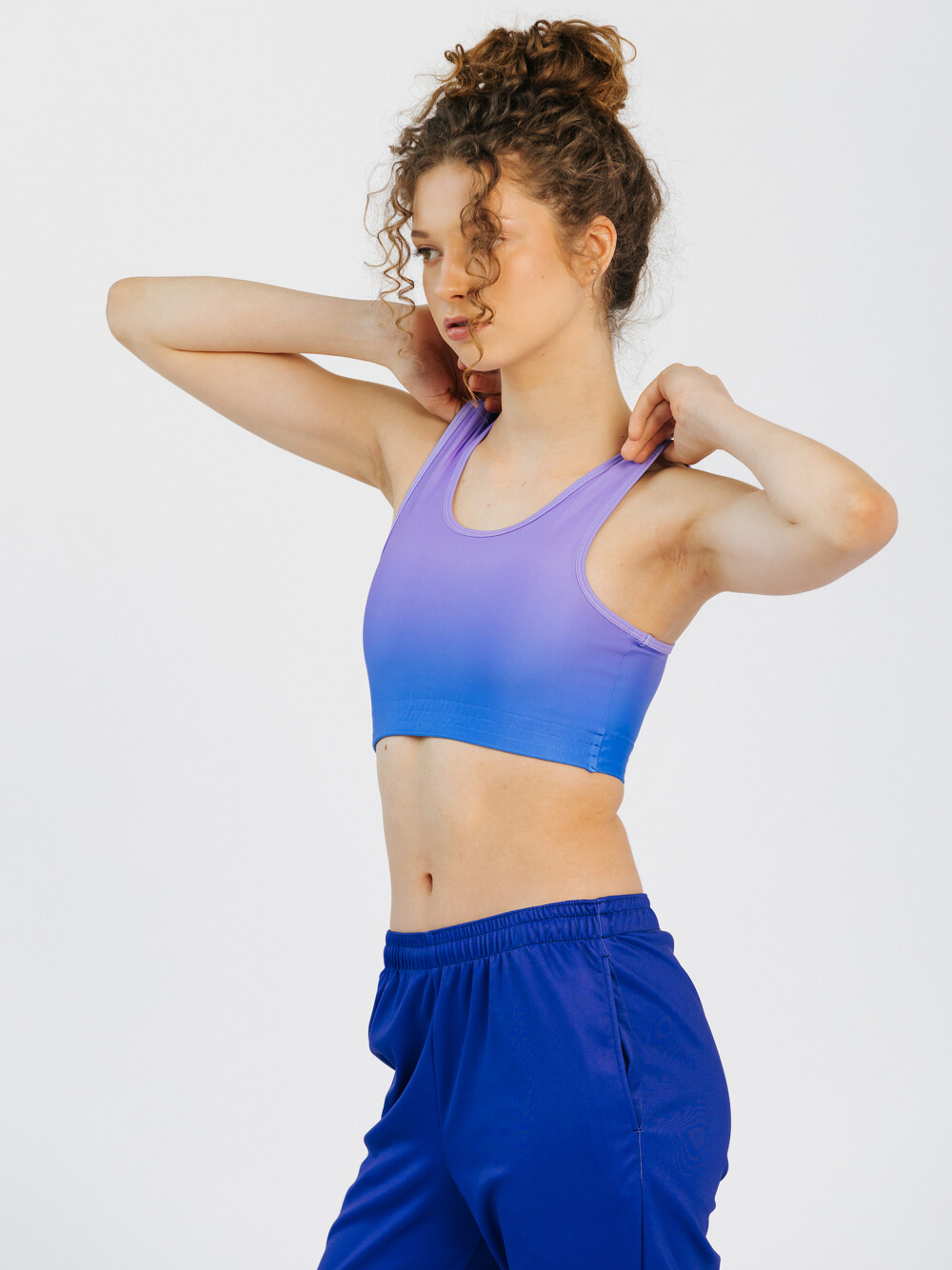Viegla atbalsta sporta krūšturis ar dubultu priekšējo daļu, stingru un elastīgu apakšmalu krūšu atbalatam un komfortam, dziļu kakla izgriezumu, racerback mugurpusi, platiem roku riņķiem ar apmalojuma lenti, izgatavots no elastīga materiāla, lai nodrošinātu maksimālu komfortu un kustības brīvību.