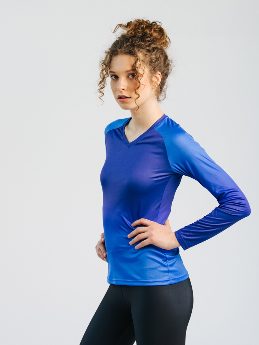 Brīvi pieguļošs dejošanas T-krekls ar garām reglāna piedurknēm, kas izgatavots no viegla materiāla, lai nodrošinātu maksimālu komfortu un kustības brīvību.