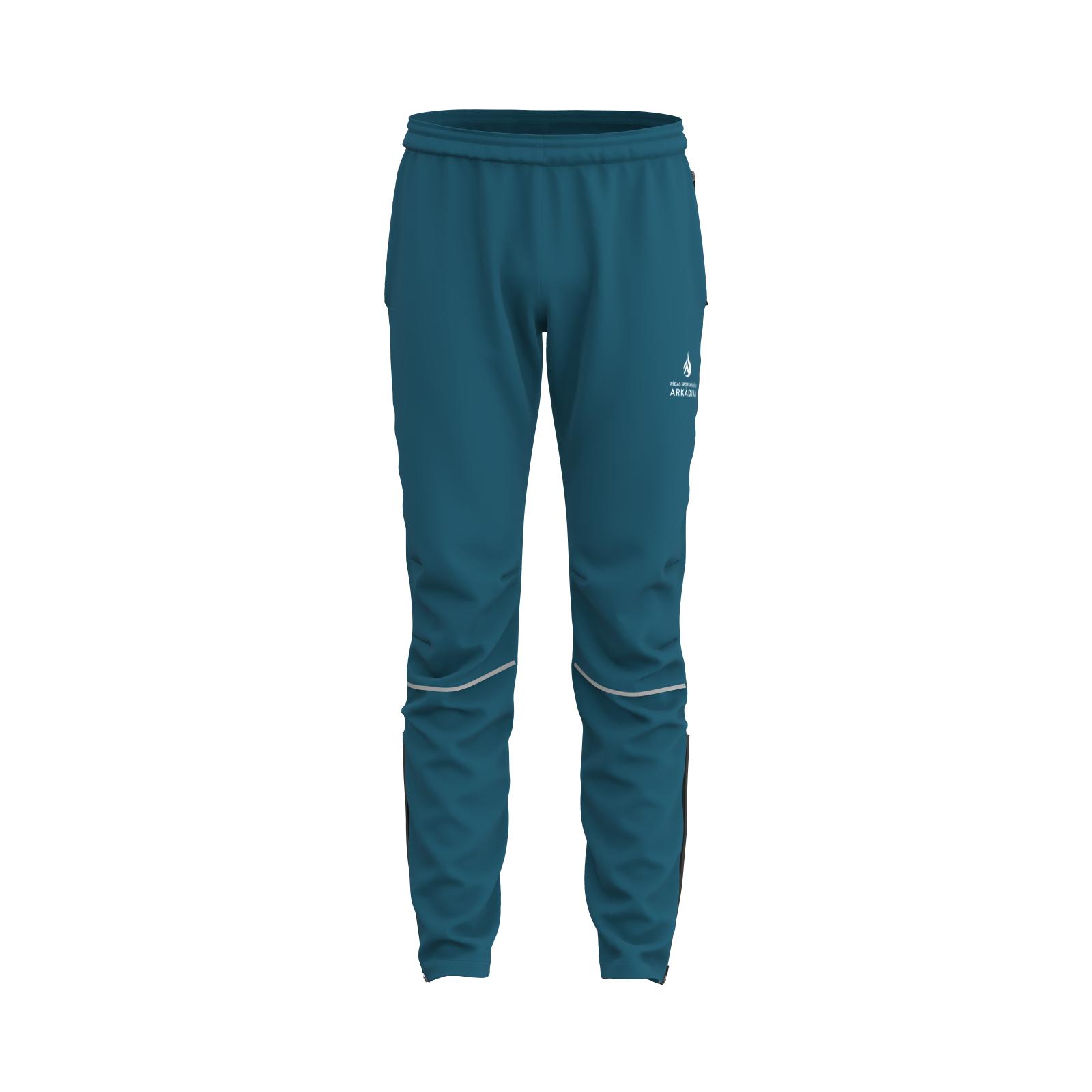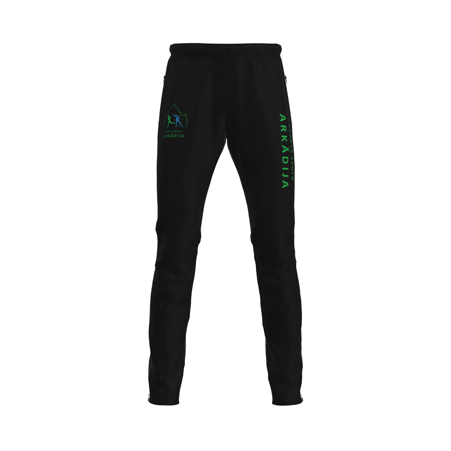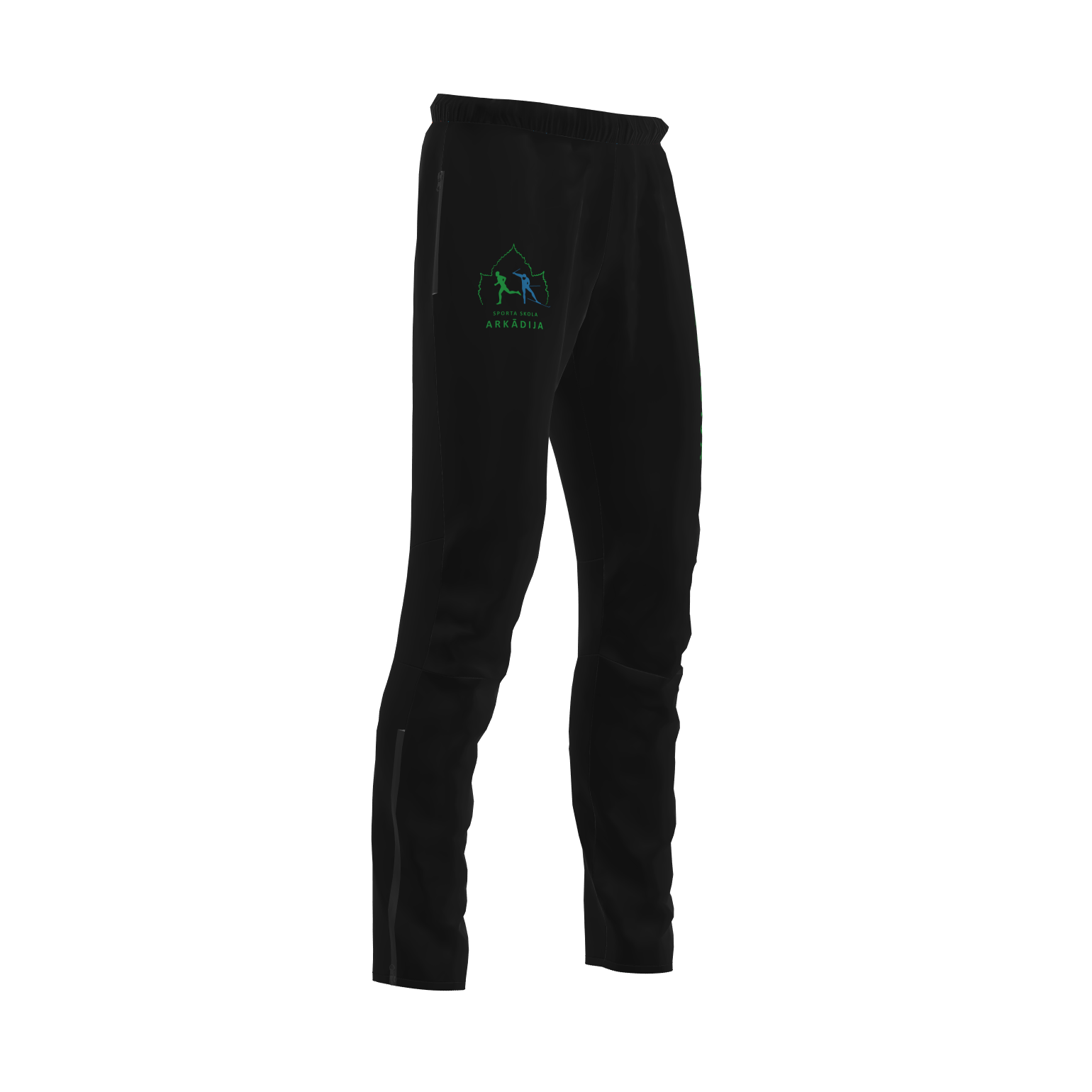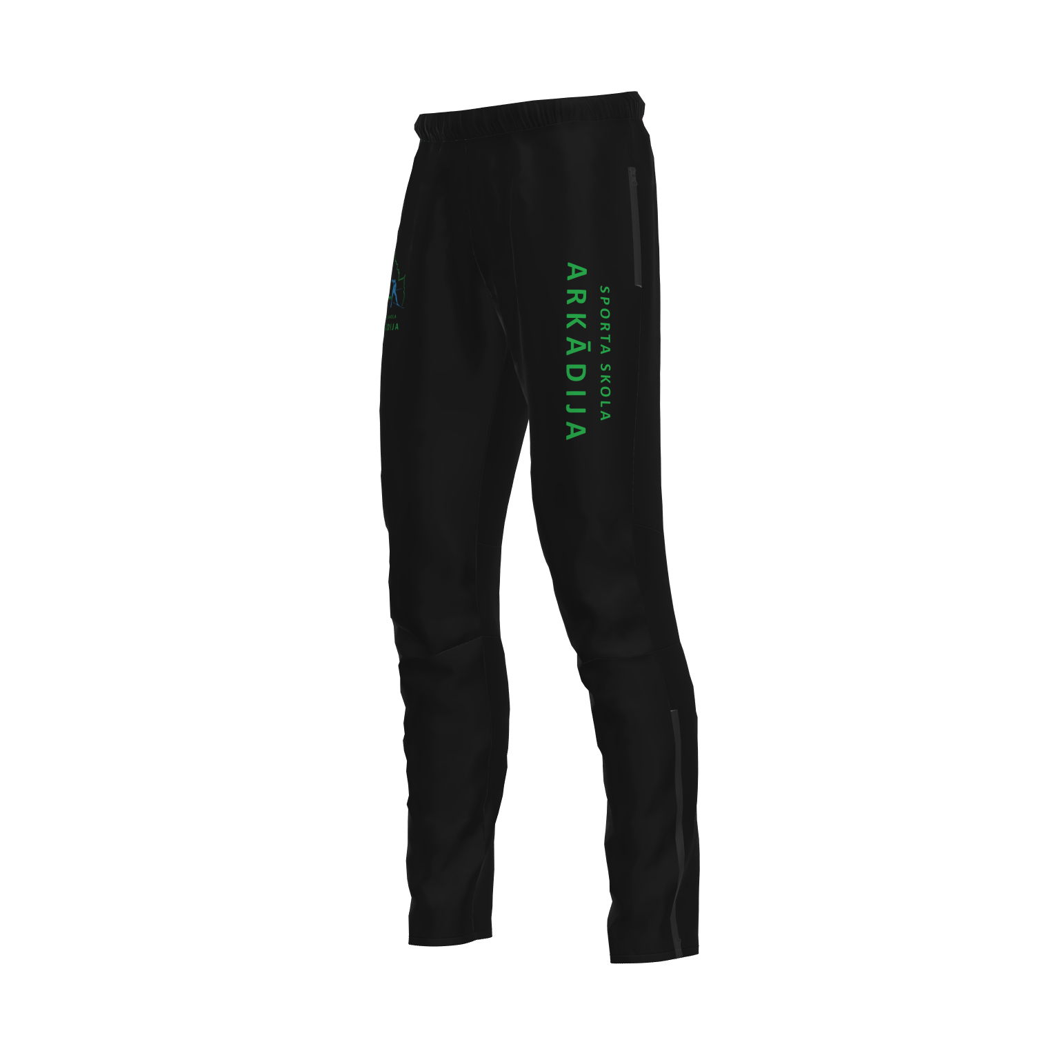 Treniņbikses ar Sporta skolas “Arkādija” dizainu. Piemērota treniņiem un valkāšanai ikdienā. Bikses ir ar elastīgu regulējamu jostasvietu, divām sānu kabatām ar rāvējslēdzēja aizdari un rāvējslēdzēju ielaidēm bikšu staru galos.