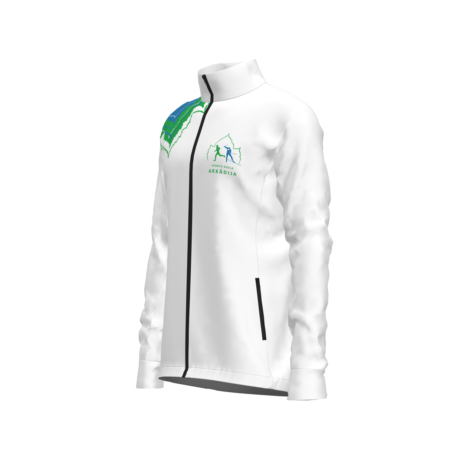 Brīvi pieguļoša treniņjaka ar Sporta skolas “Arkādija” dizainu, izgatavota no viegla, vēju aizturoša un ūdens atgrūdošu pārklājumu. Sānos iestrādāti elastīga auduma paneļi, kas veicina gaisa cirkulāciju intensīvu kustību laikā. Jakai ir regulējama apakšmala, pilna garuma rāvējslēdzēja aizdare, stāvkakle, elastīgas piedurkņu manžetes un sānu kabatas ar rāvējslēdzējiem. Ideāla izvēle treniņiem vai aktīvai ikdienai..